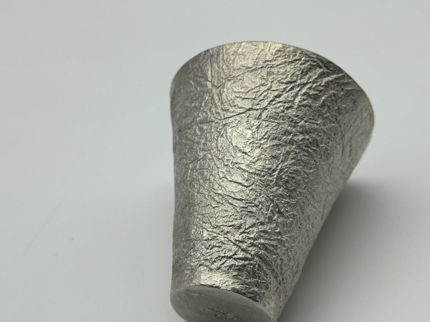 板状の錫をコツコツと模様を入れながら成形された錫の酒器