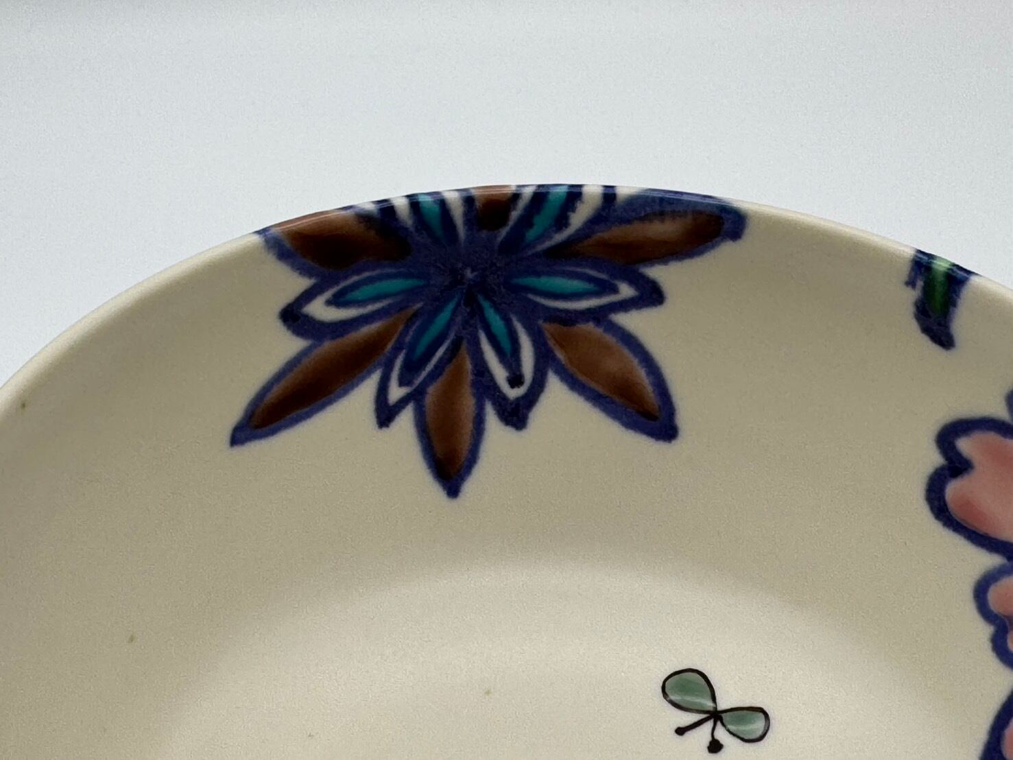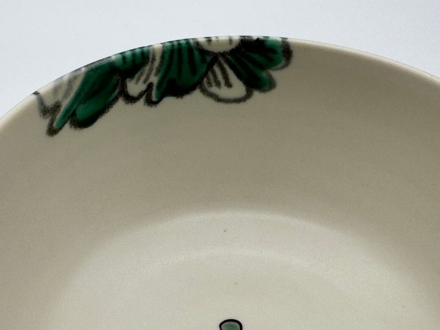 作陶過程で、釉薬の表面に針でつついた跡のような細かい穴(ピンホール)や貫入(釉薬のヒビ)が付くことがあります。うつわの表面に、極小さい「黒点」や「絵の具とび」、が見られる場合がございます。これらは窯の中で起こりうる自然現象ですので、手作りの味わいのポイントとしてお楽しみください。